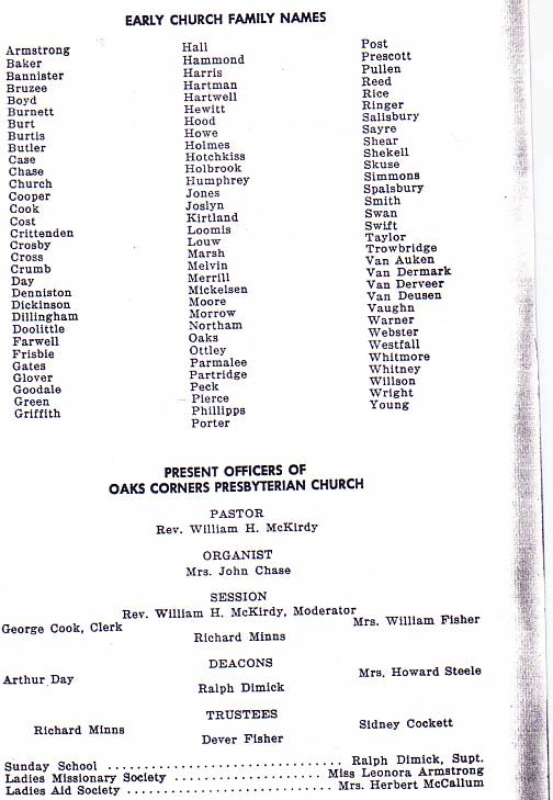 history of Oaks Corners Church and community are